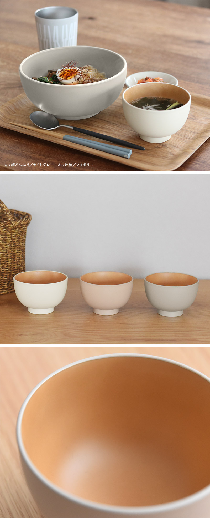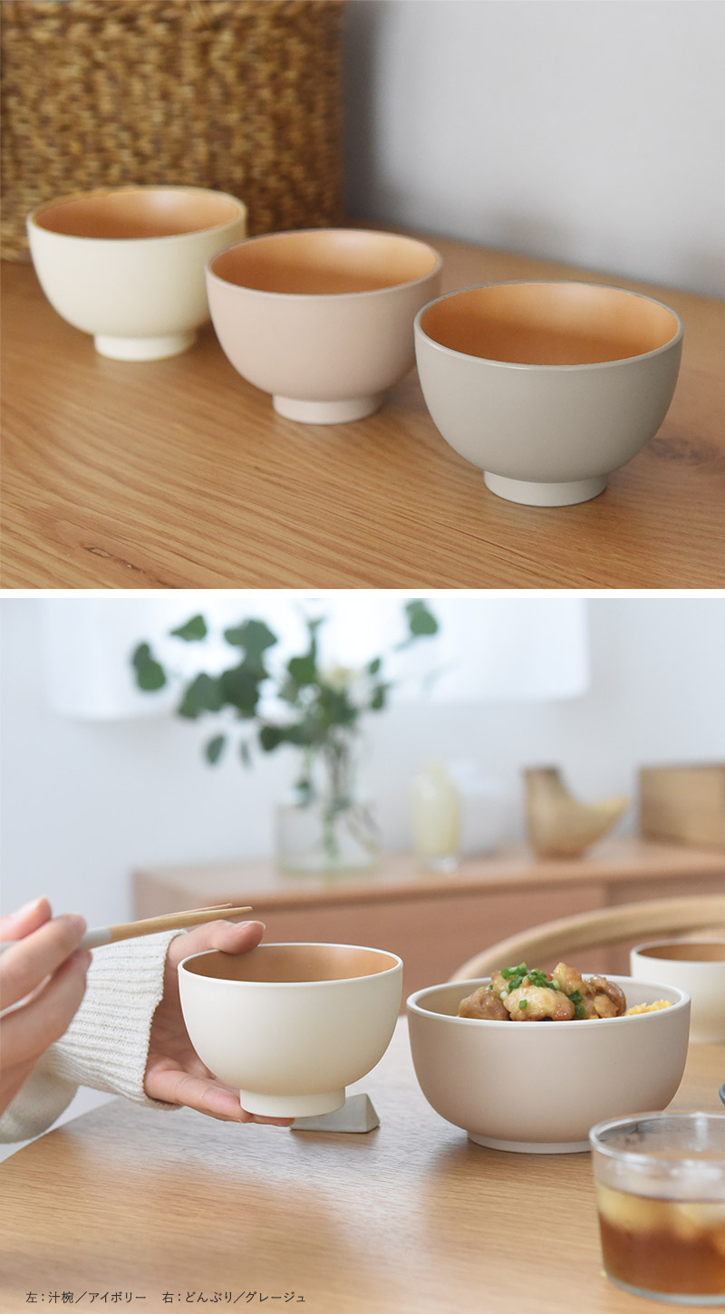 電子レンジ・食洗機対応・軽い・割れにくい・熱くなりにくい、という使いやすさのポイントがたくさん詰まったお椀。食卓にマットに馴染む、北欧ライクなニュアンスカラーも魅力。