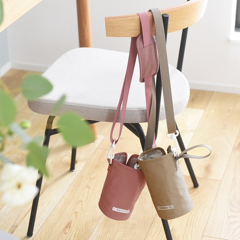 20cmのループ付きで、机の横にかけておいても、水筒が下につきません。ループに手を通して、持ち運ぶこともできます。
