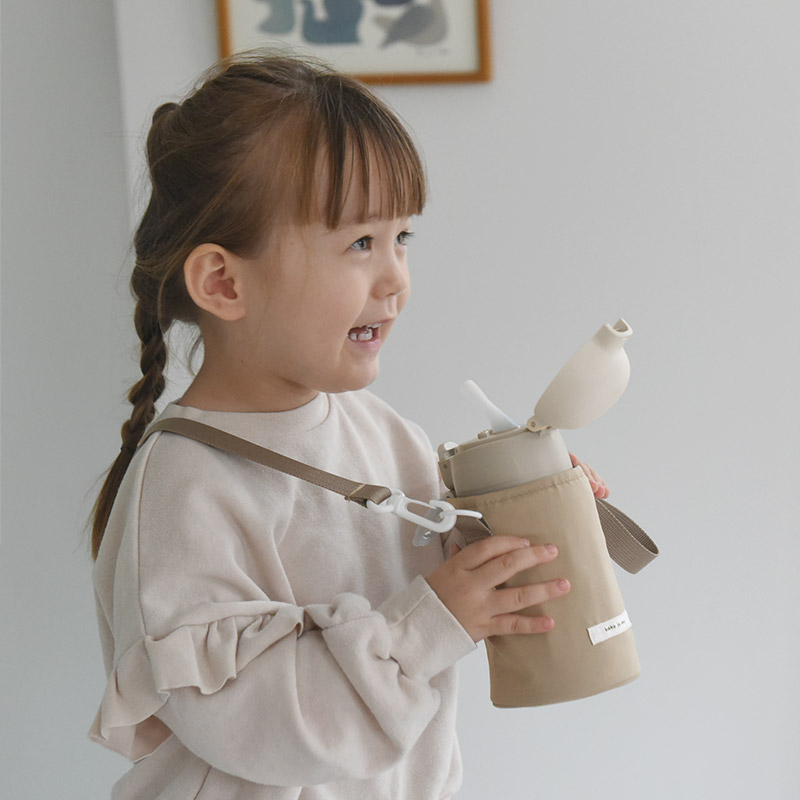 「kukka ja puu ステンレス製 キッズボトル 450ml&600ml&800ml」の、デザインやカラーリングを損なわないよう、水筒本体とコーディネートできる生地・パーツ色を組み合わせた専用カバー。