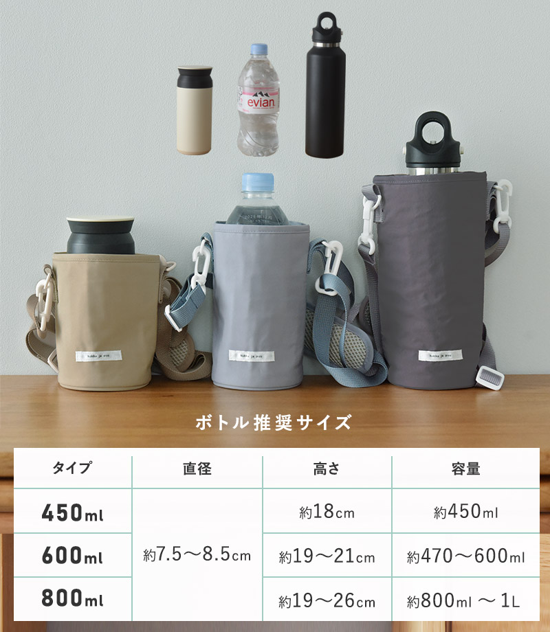 キッズボトル以外に使うのも◎。直径はどれも『8.5cm』までで、高さはサイズごとに異なります。500mlのペットボトルの場合、600mlタイプにすっぽり入ります。
