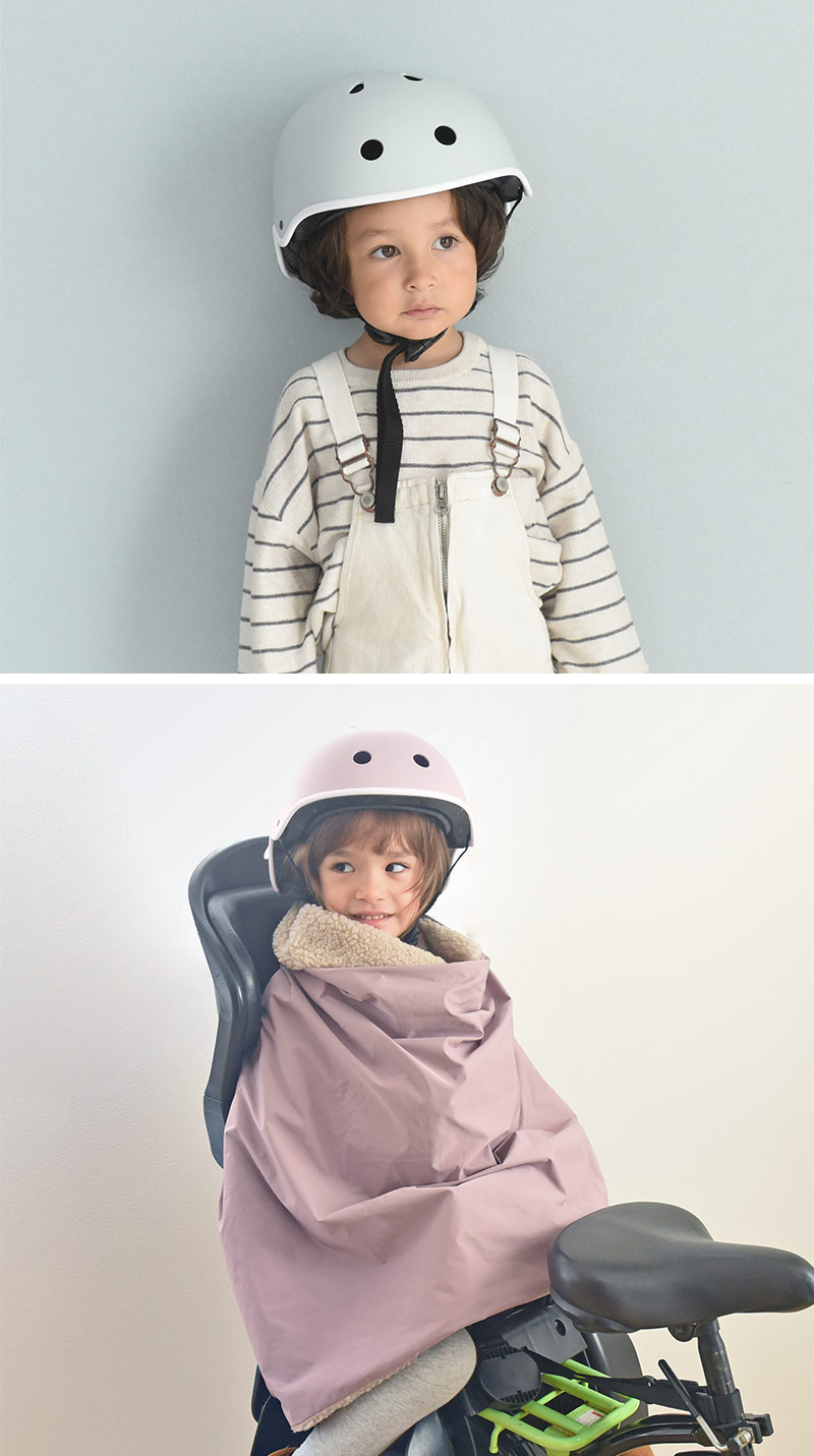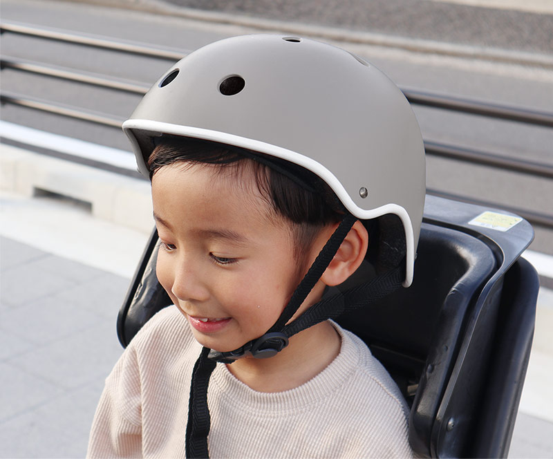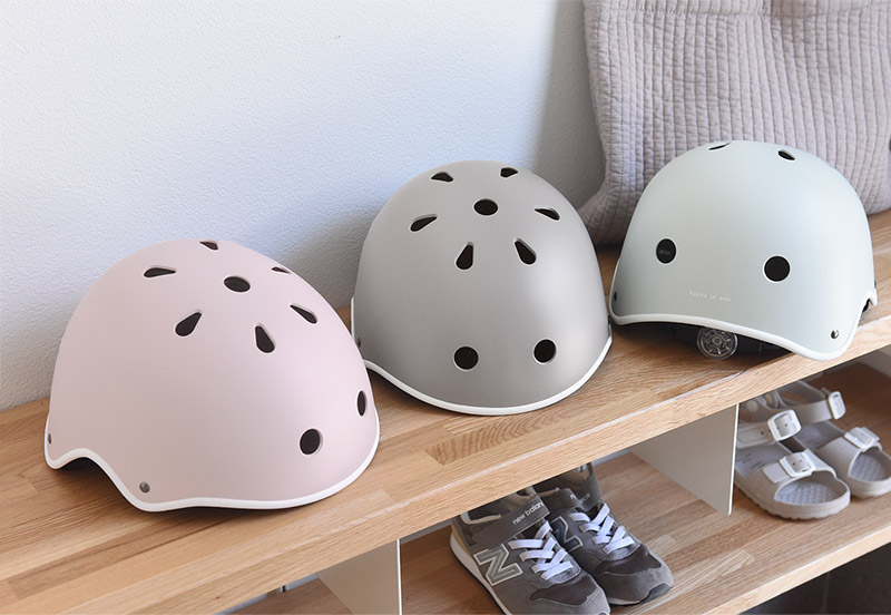 マットなニュアンスカラーで、ほんのり北欧テイスト。原色やポップなデザインの多いキッズアイテムとは一味違う、ちょっと背伸び気分でかぶれるキッズヘルメットです。