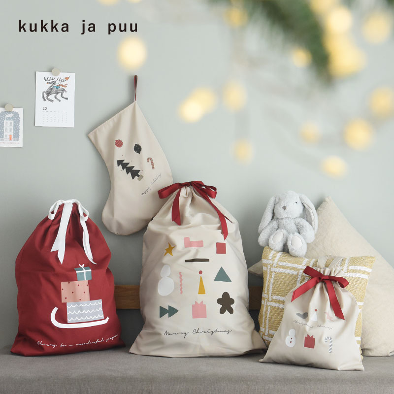 クリスマス kukka ja puu サンタ袋のような クリスマス ラッピング袋 特大・大サイズ・靴下/クッカヤプー【c25】