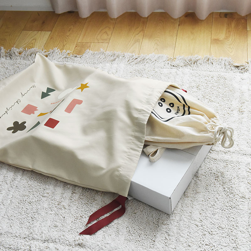 大きいサイズの袋だから、クリスマスが終わったらツリーやライトなどのクリスマス用品の収納袋としてもお使いただけます。