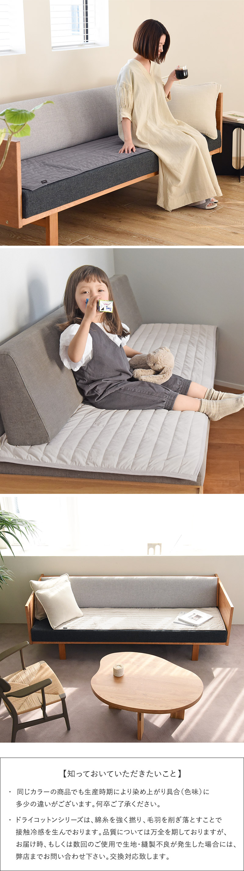 あのドライコットンでソファパッドを作ったら、夏のソファがひんや~りもっと気持ち良くすごせそう!そんなスタッフの妄想から生まれたのがこちら。