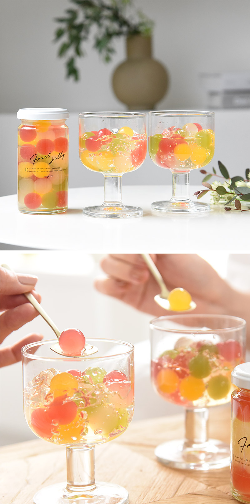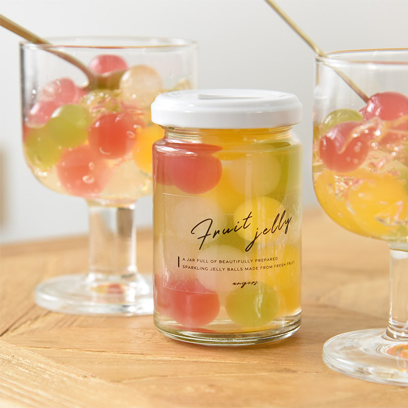 ぎゅっと詰められた丸いゼリーボールが可愛らしく、思わず手が伸びる彩り豊かな瓶。