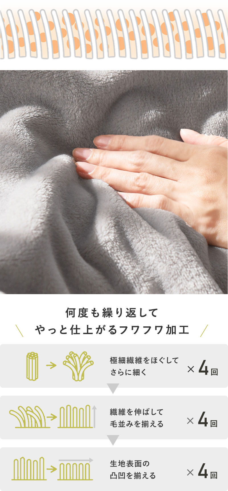 ふわっと軽くてあたたかく、ずっと着続けていたくなる肌触りのマイクロファイバー毛布は、「朝ベッドから出られなくなる毛布」という愛称も。