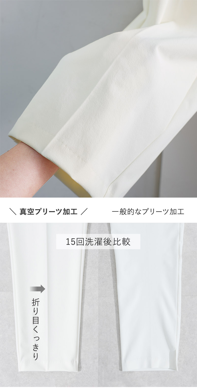 このセンターラインは、形状安定効果のある「真空プリーツ加工」を施しており、美しいラインが長続きするという嬉しい機能も。