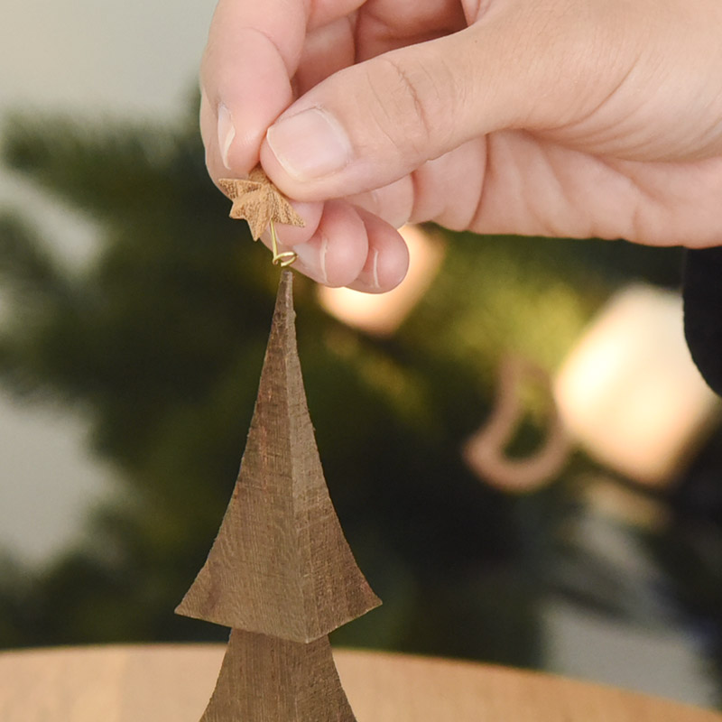同じケヤキでも色や木目、風合いはそれぞれ。唯一無二のツリーとともに“手彫りの星”と“オリジナルストーリー”が入ったアンジェの特別セットをお届けします。一期一会の出会いをぜひ、お楽しみに。