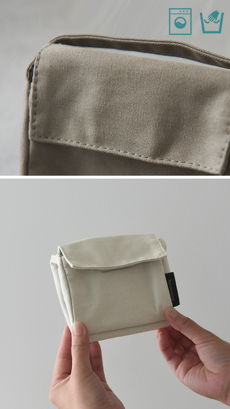 使い捨てサイズのお手拭きや、海苔を入れるのにちょうど良い、フラットポケットをつけました。あると何かしら便利なポケットです。