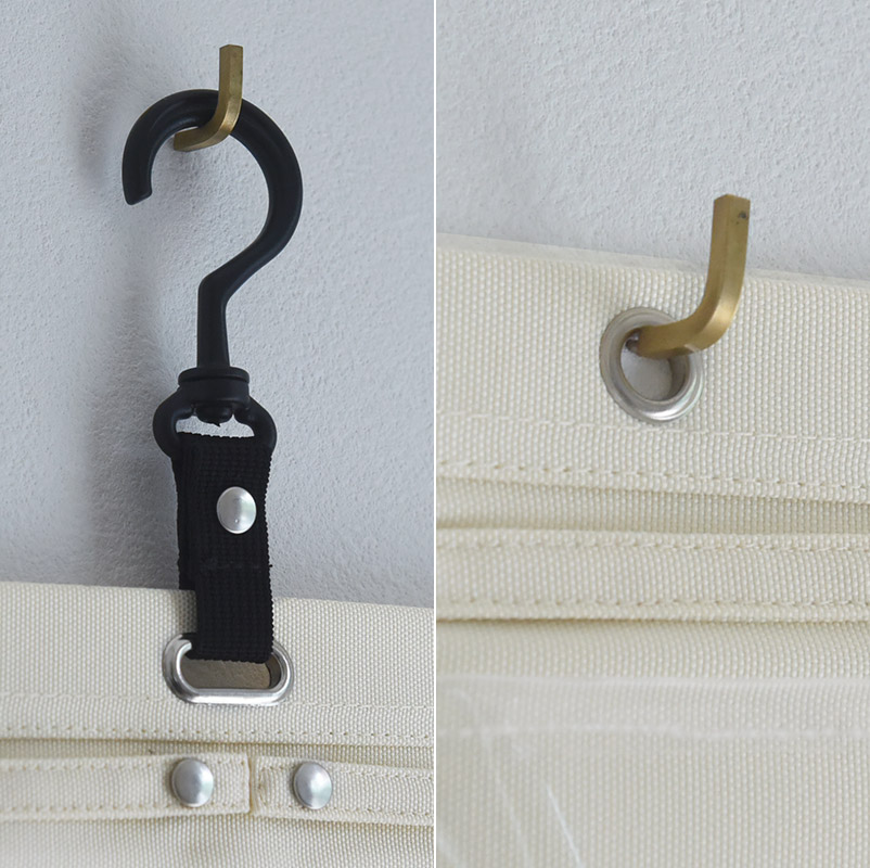 360度回転するS字フックか、ハトメ、どちらでも設置が可能。飾る場所に合わせて選んでいただけます。