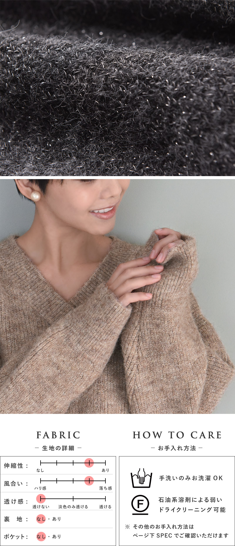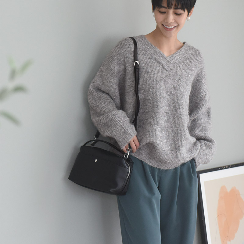 上品なきらめきがシーズンモードを盛り上げてくれるニット。暗くなりがちな冬コーデに華やかさを添えてくれます。ニュアンスのある杢調の生地感がシンプルすぎず表情感のある装いに。