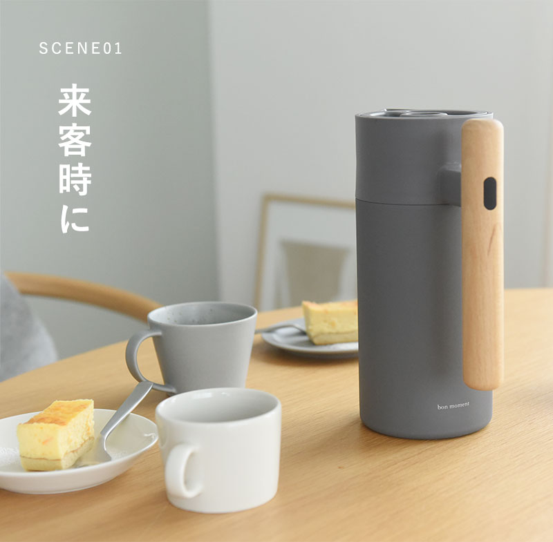 そのままテーブルに置いておけば、飲み物のお代わりもスムーズに。お湯を沸かす必要もなければ、キッチンの往来も最小限にできて、ゆったりとした時間を過ごせます。