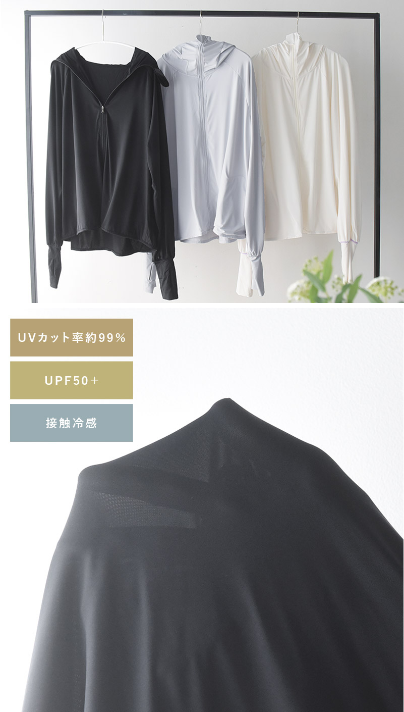 UVカット率99%、UPF50+のためしっかり日焼け対策も。