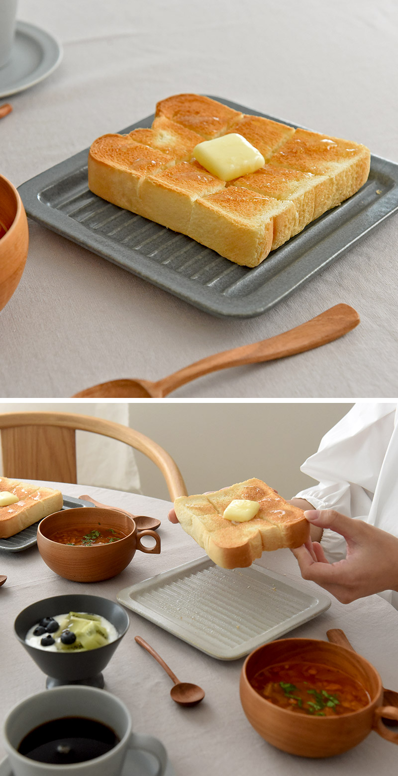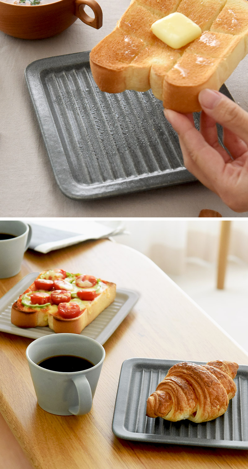 そこで、お皿の表面に凸凹模様をあしらい、スキマから蒸気が逃げるように設計。お皿とトーストの密着を最小限にすることで、焼き立てのサクサク食感を楽しめます。