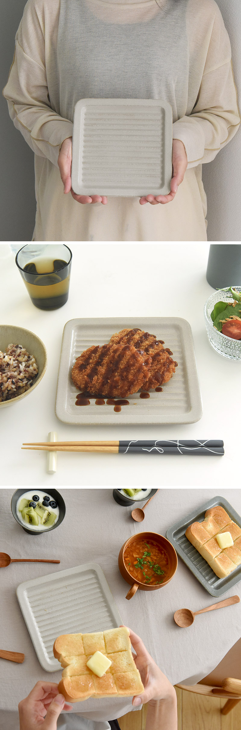 ライトグレーアイボリーにまろやかなグレーが混ざった、ライトグレー。食卓風景を明るく彩ります。
