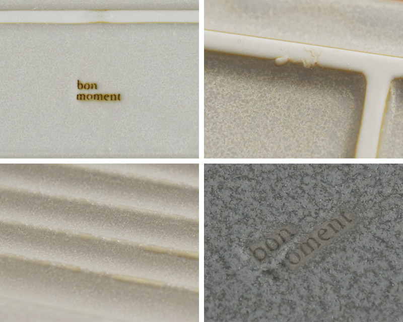 ひとつひとつ手作業で作られるため、釉薬のかかり方が均一ではないことがございます。焼成の際も、窯の焼く場所によって温度が異なる為、焼きムラがでます。