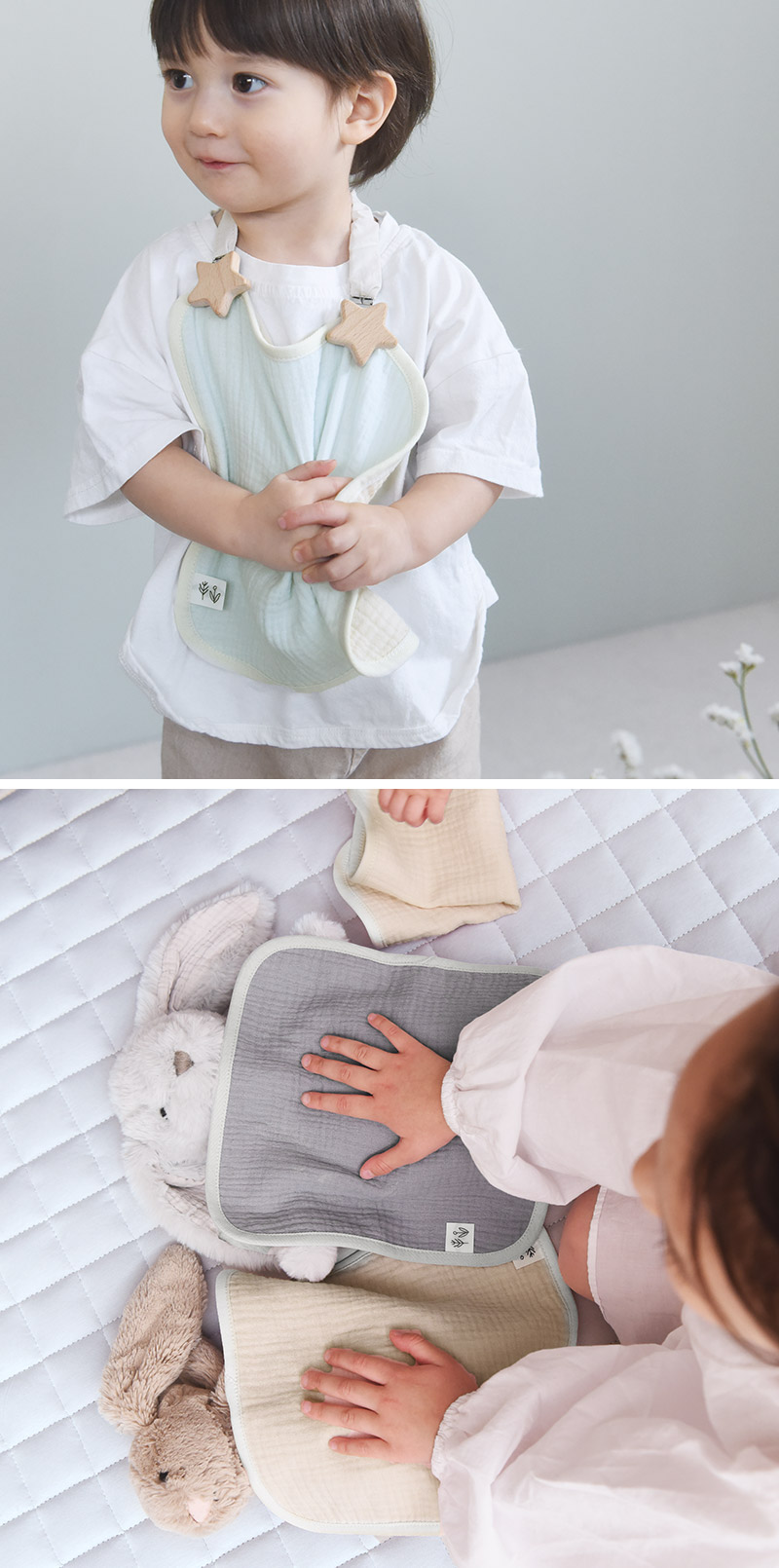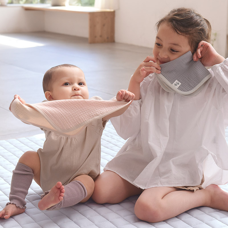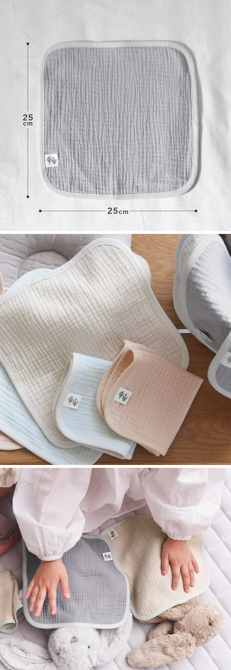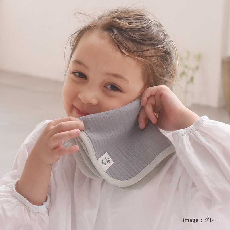 赤ちゃんの口や顔を拭くときにストレスがかからない、柔らかな4重ガーゼ。吸水性にも優れているから、よだれ拭きやお食事の時のスタイにぴったりです。