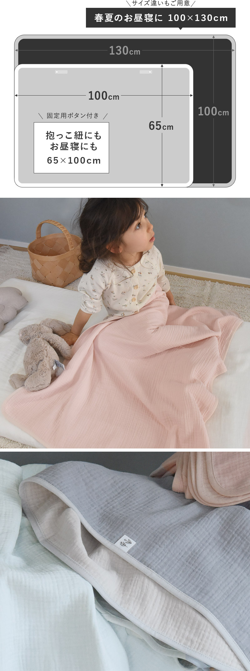 赤ちゃんのお昼寝用のケットとしてや、抱っこ紐に取り付けてお出かけ時の日差しや冷房対策用のケープとしてもお使いいただけます。