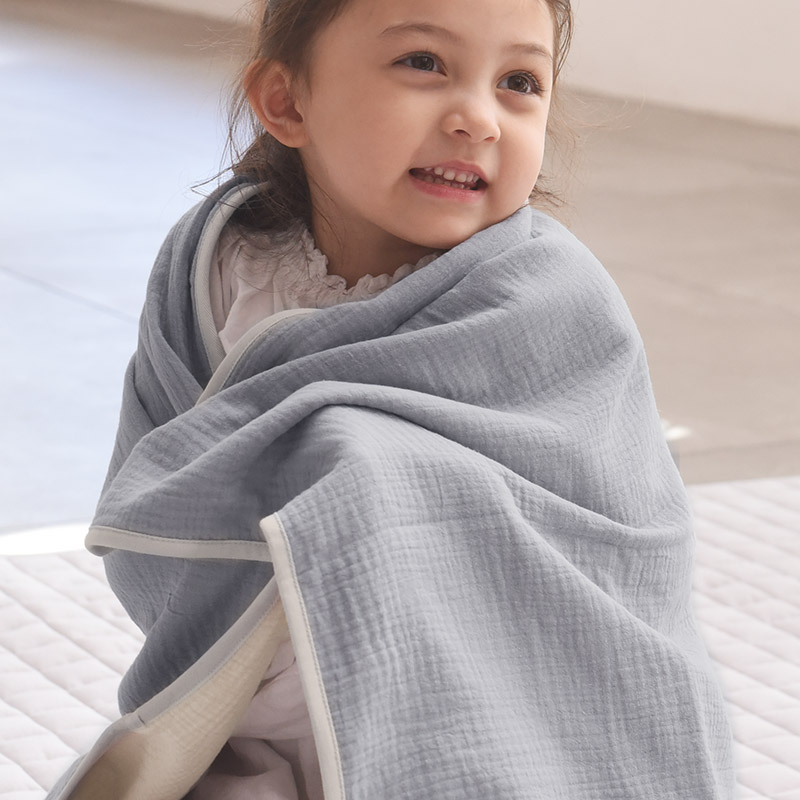 2重織りのガーゼを重ねて、4層に仕立てたブランケット(65×100cm)。