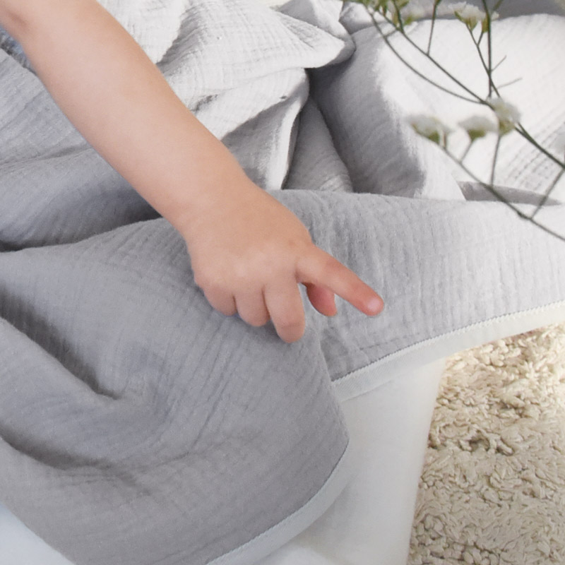 薄すぎず、厚すぎない4重ガーゼは、体温の高いお子さまのお昼寝用のブランケットに◎。ママのひざ掛けとしてもちょうどよいサイズ感です。
