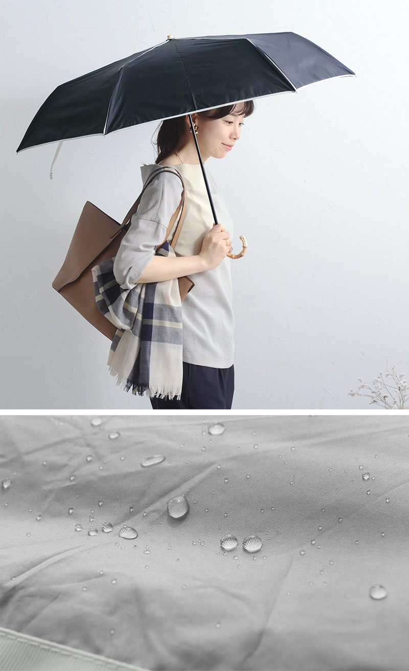 撥水性、耐水性に優れた素材を使用しているので急な雨でも安心。曇りの日や雨の日も紫外線はゼロではないので、雨傘として使いながら紫外線もブロックできるのは嬉しいポイント。