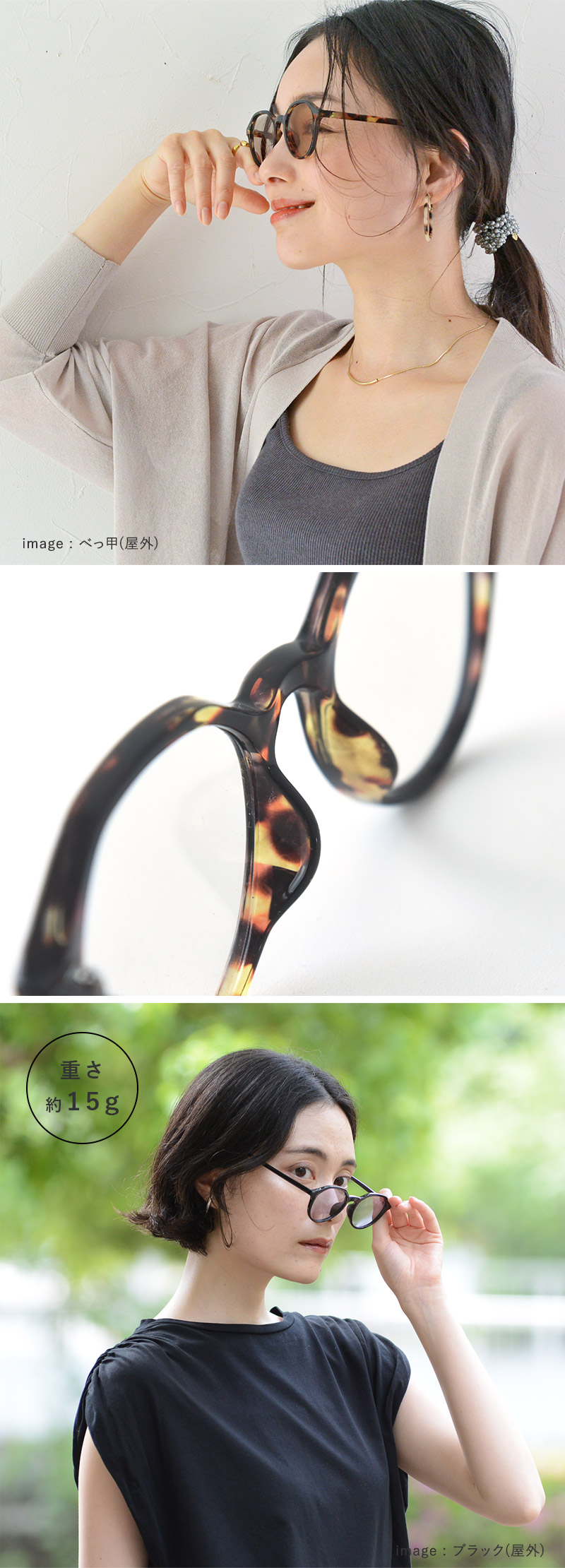 屋内でサングラスを着けたままだと少し気恥ずかしいけれどこれならバレない。むしろ「実はサングラスなんだ~」と思わず教えたくなりそうな夏の新相棒です。
