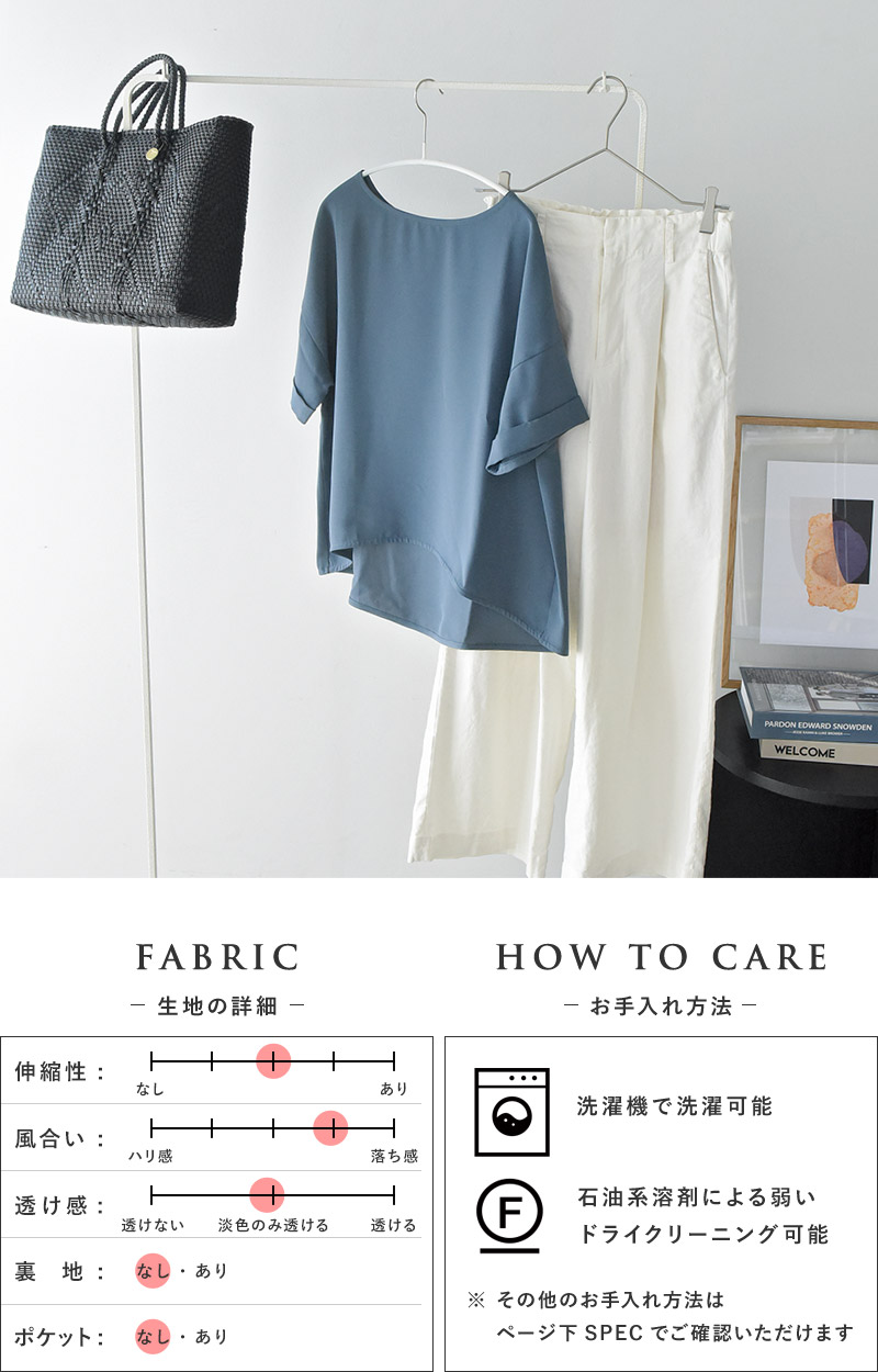 朝から何も着たくない暑い日、Tシャツ感覚でストンとラクに着られて、汗をかいても洗濯機でジャブジャブ洗ってOK。それでいて、見た目はブラウスのきちんと感。