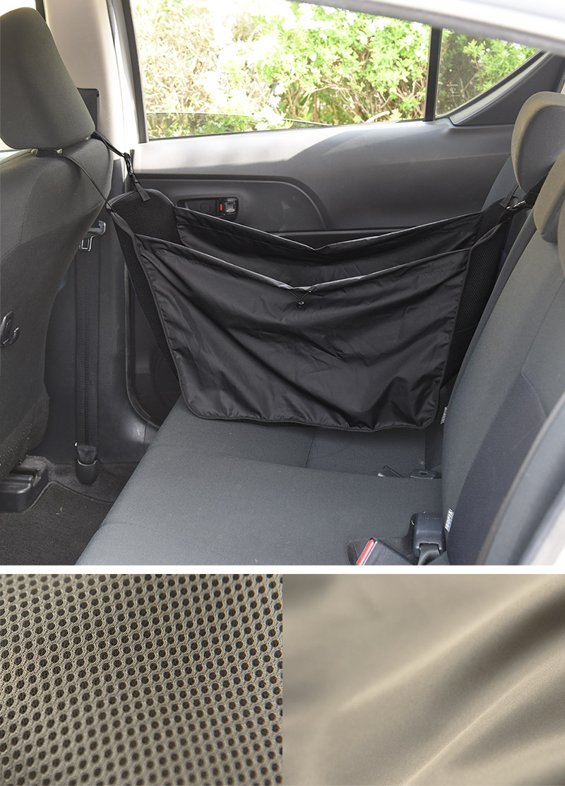 車の内装に馴染みやすいように、無地のメッシュ素材を使ったシンプルデザインに。クッション性があるメッシュ素材は軽量ながら、荷物をやさしく守ってくれます。