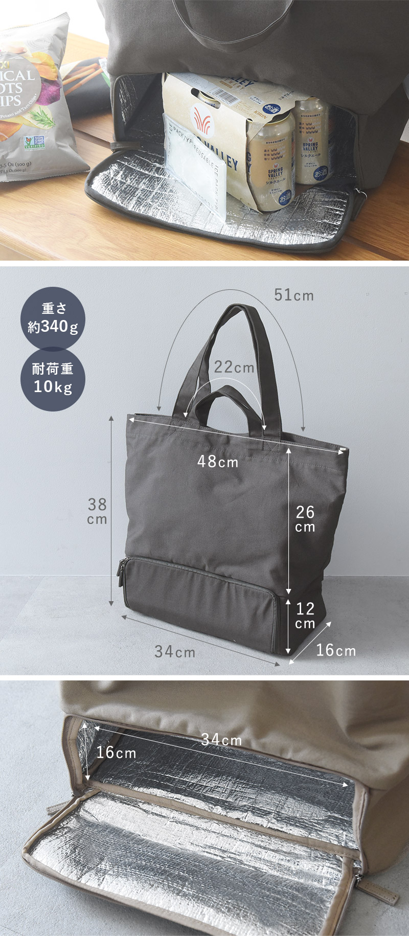 保冷&常温を分けられる2層トート