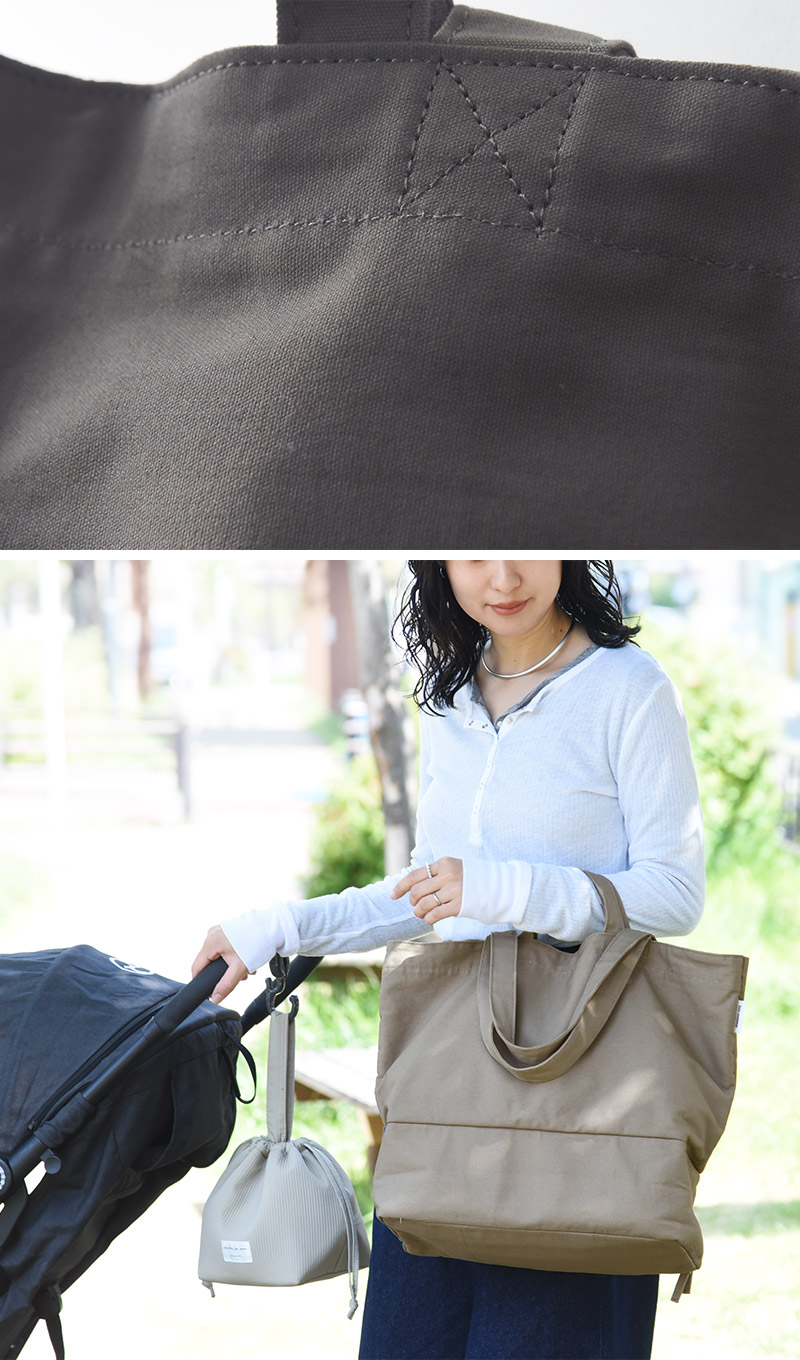 コットン100%の厚手の素材を使うことで、アウトドア感は控えめに、普段でも使いやすいようなシンプルトートに仕上げました。