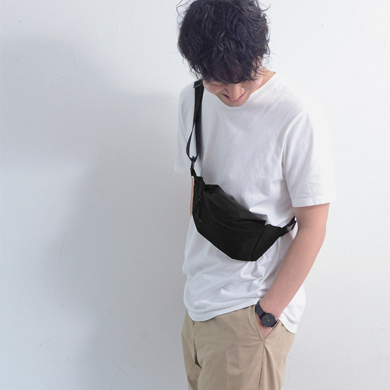 ショルダーは長さ調整ができ、男女問わず使えます。マットな質感の素材に、斜めのファスナーがアクセントになったシンプルデザインは、どんなコーディネートにも相性◎。