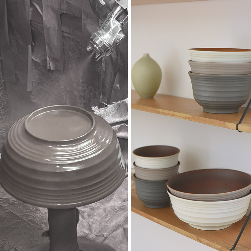 ・塗装はスプレーで行うため、アイボリー、グレージュの器は、外側に内側の塗装が少し付着しております。予めご了承くださいませ。