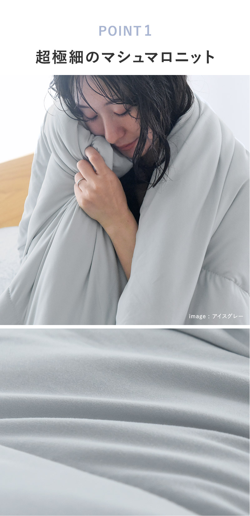肌に触れる表面は、超極細のポリエステル繊維を採用。体にフィットしやすく、肌と布団の間に隙間ができにくいので、まるで雲につつまれているような、ふわふわの肌触りを実現しています。