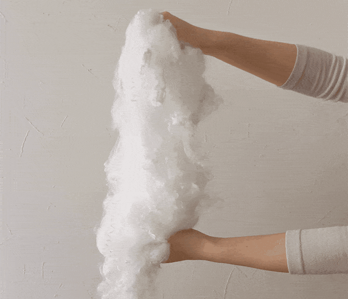 中綿には、エンドレスファイバー(超長繊維)を使用したスーパーマイクロ綿を採用。繊維を約3倍の長さにすることで、よりもっちり感のある肌触りに。まるで雲の中にいるかのような、ふわふわ感が朝まで続きます。