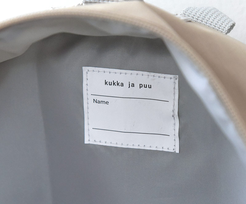 リュック内側には紛失防止のお名前タグも。外から見えないので、防犯面でも安心です。