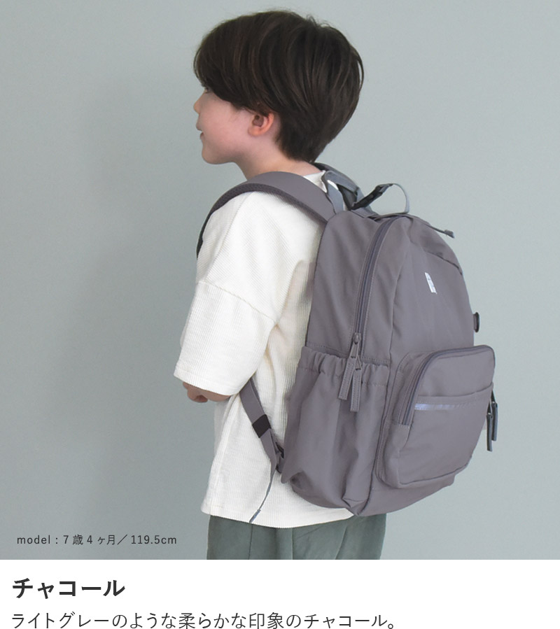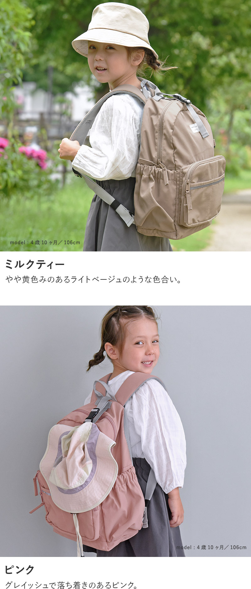 通園リュックとしてはもちろん、低学年キッズの学童使いにも◎。シンプルなデザインで飽きがこず長く使えるリュックです。