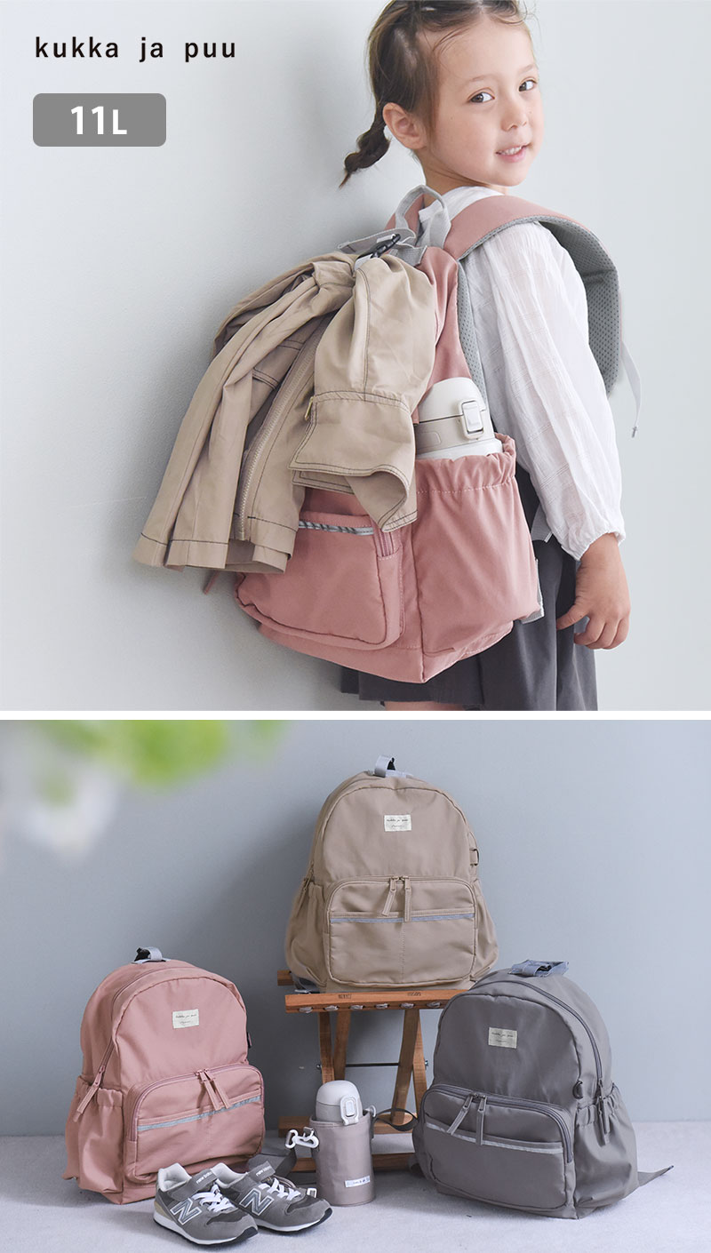 保育園リュックにも、学童用にもお着替えや靴下、ハンカチ、タオルなど保育園の持ち物がしっかり入る11Lサイズ。たっぷりと収納ができるので、小学校低学年のお出かけや、遠足、学童などでも活躍してくれます。