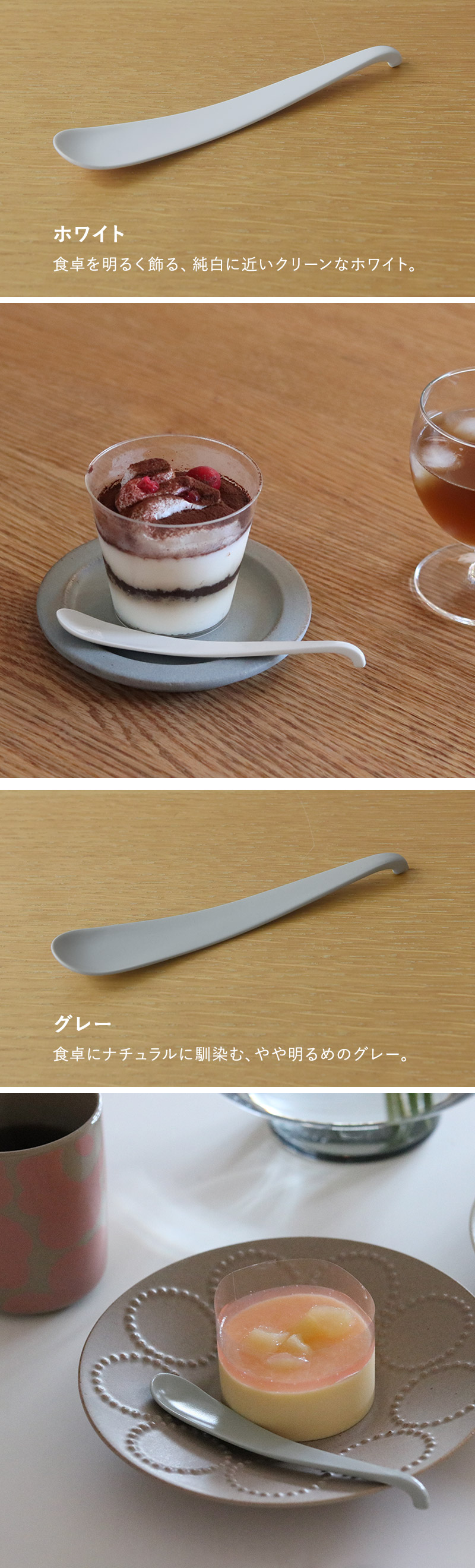 こちらは、アイスクリームやゼリー、ムースなどのデザートや、ヨーグルトを食べる時にちょうどいい小ぶりなサイズです。