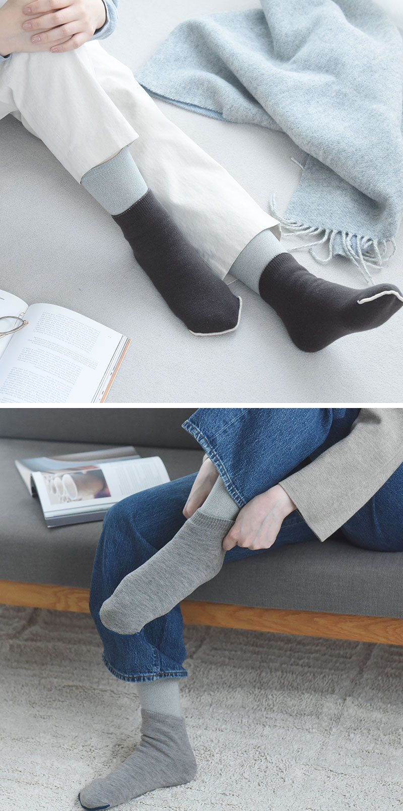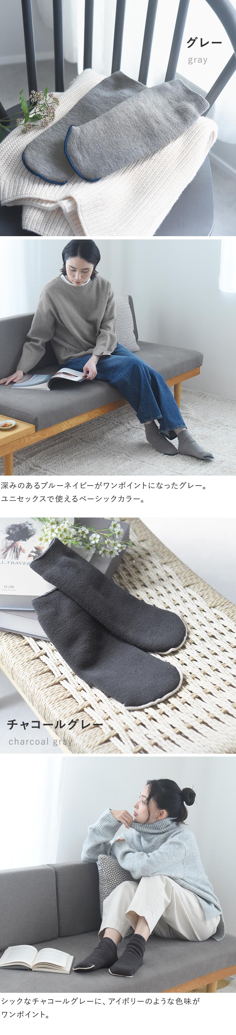内側が起毛素材になった、アンクル丈のルームソックス。