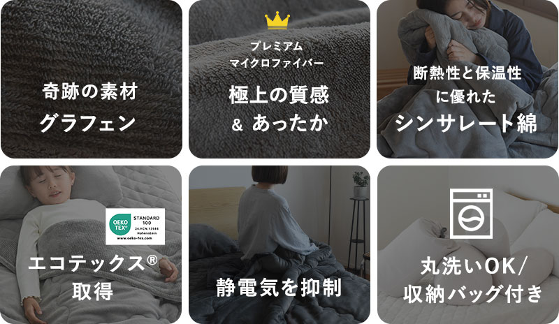 「朝ベッドから出られなくなる毛布」に、奇跡の素材と呼ばれるグラフェンをドッキング、「奇跡のグラフェン毛布」が誕生しました。