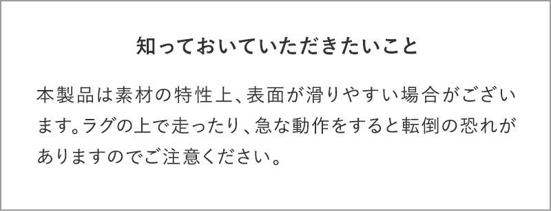 裏面全体に滑り止め加工が施されているので、フローリングの床でもサッと一枚敷くだけでOK。ズレて直して、、、のストレスから解放されます。