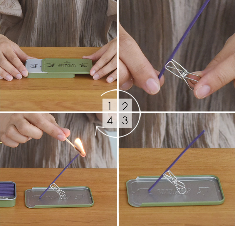 ケースの蓋がトレーになり、お香立て代わりになるクリップもついているので、はじめてお香にチャレンジする方にもぴったり。