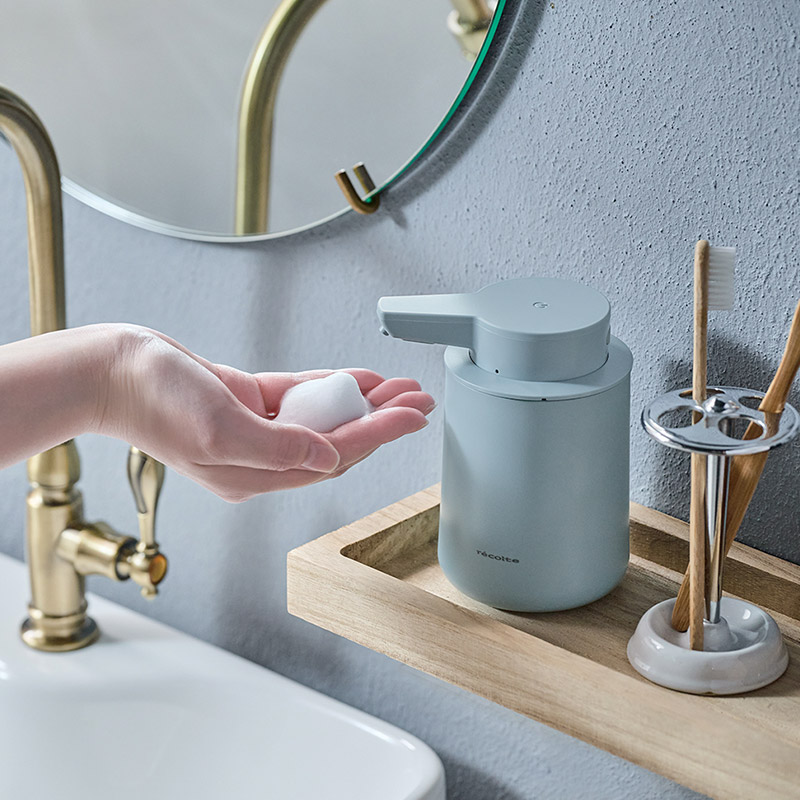 オートディスペンサーというと機械的な雰囲気なものが多い中、曲線的でやさしく空間に馴染んでくれるのが特徴。すっきりシンプルで飽きがこず、頻繁に使う洗面所やキッチンを心地よく整えてくれます。