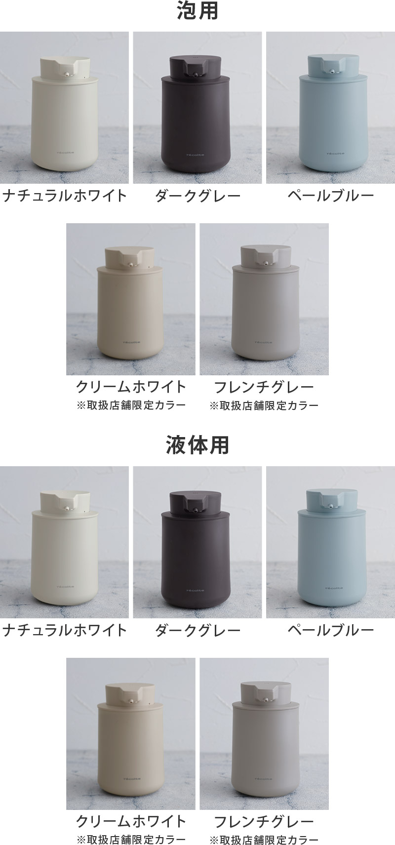 泡タイプと液体タイプから、お使いのソープに合わせてお選びいただけます。