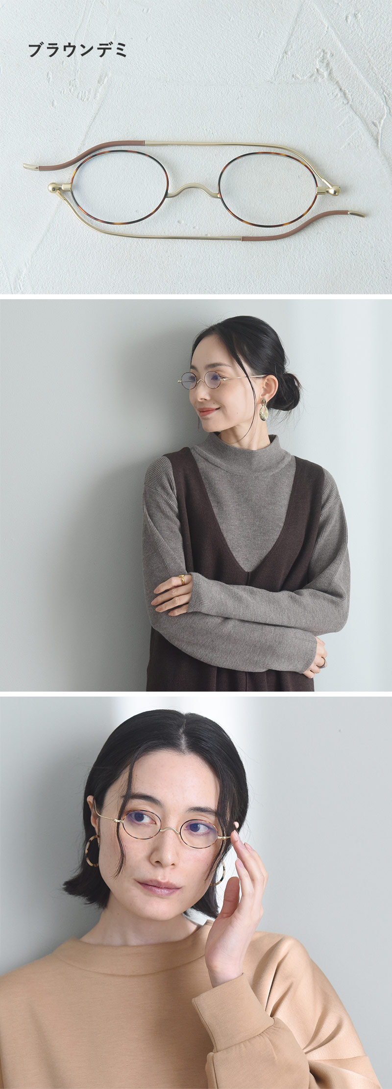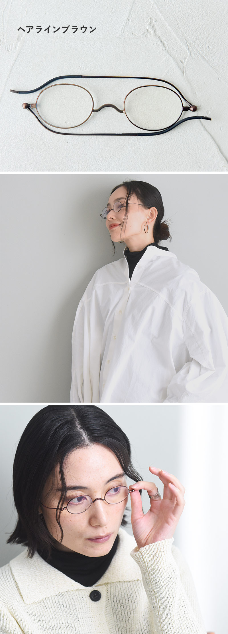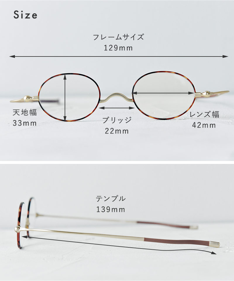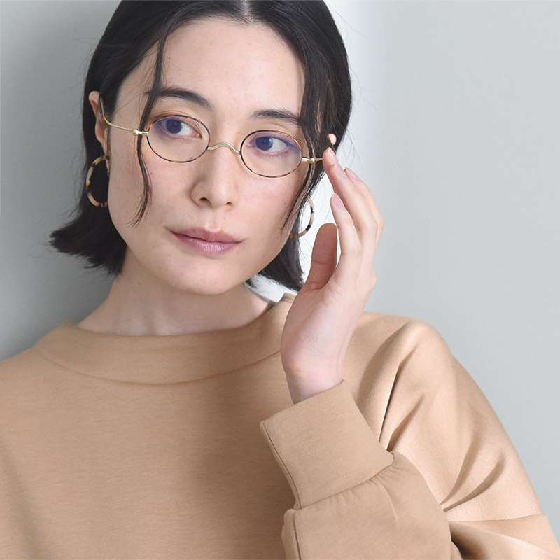 馴染みやすいオーバル型顔のタイプを問わずかけやすい、ベーシックなオーバル型デザイン。華奢なフレームとツルが上品な印象です。オーバル型の中でも上下を広めの形にすることで視界を広く保ち快適に。