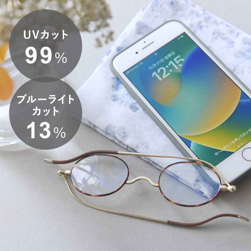 できるだけ目に優しいものを選びたい、そんな気持ちにも寄り添うのがこちらのリーディンググラス。紫外線99%カット、さらにブルーライトカット機能も付いているので目の負担も軽減してくれます。