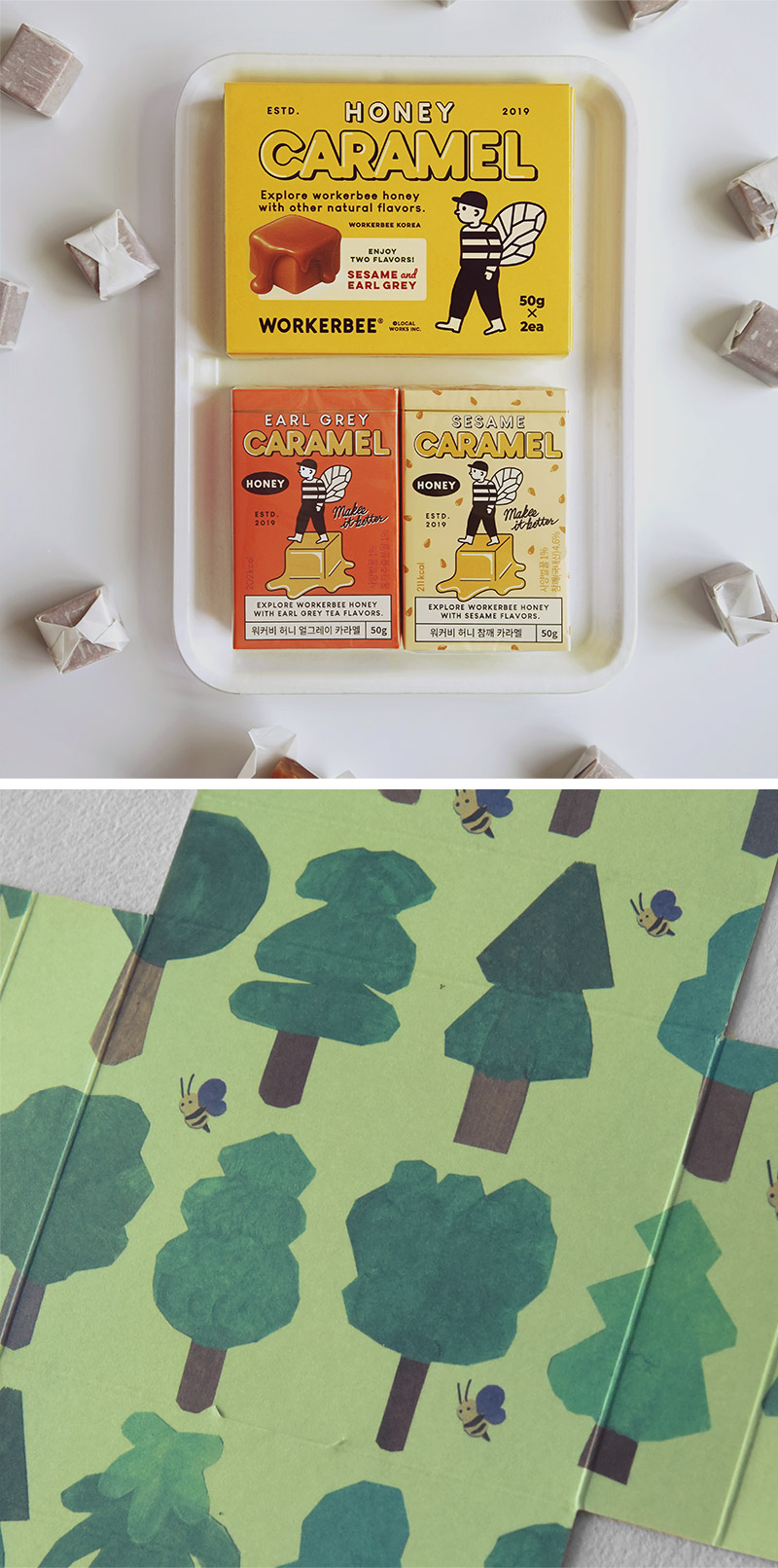 韓国のはちみつブランド、WORKERBEE(ワーカビー)から届いた「はちみつキャラメル」特別セット。ポップでなパッケージデザインと、はちみつ香る濃厚な味わいが魅力です。