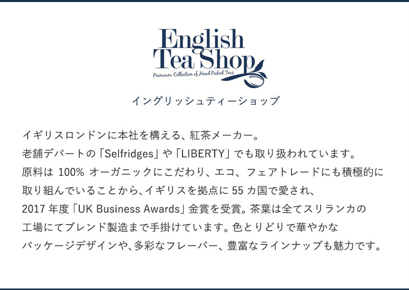 イギリス発の「English Tea Shop(イングリッシュティーショップ)」から、今年もクリスマスギフトにぴったりの紅茶が届きました。