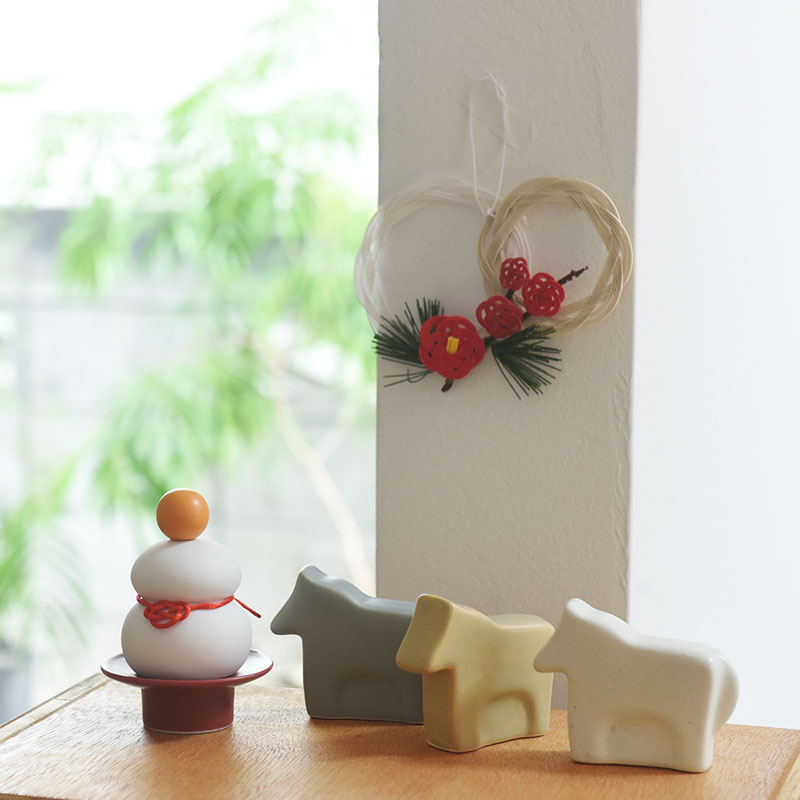 お家に飾っていただきやすい、小ぶりのサイズ感。白やベージュの水引をベースにした、お正月らしい雰囲気の3種類をご用意しました。