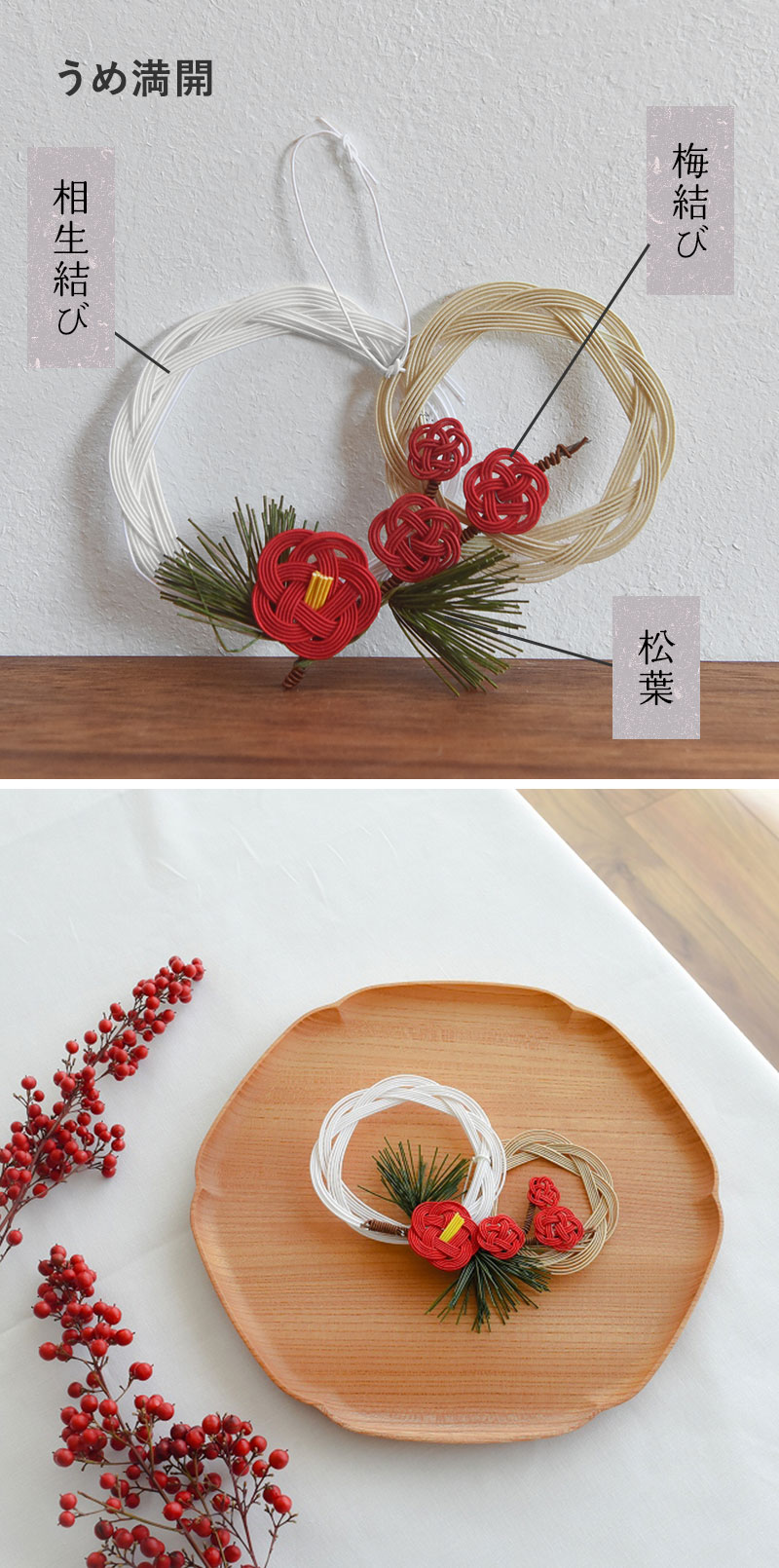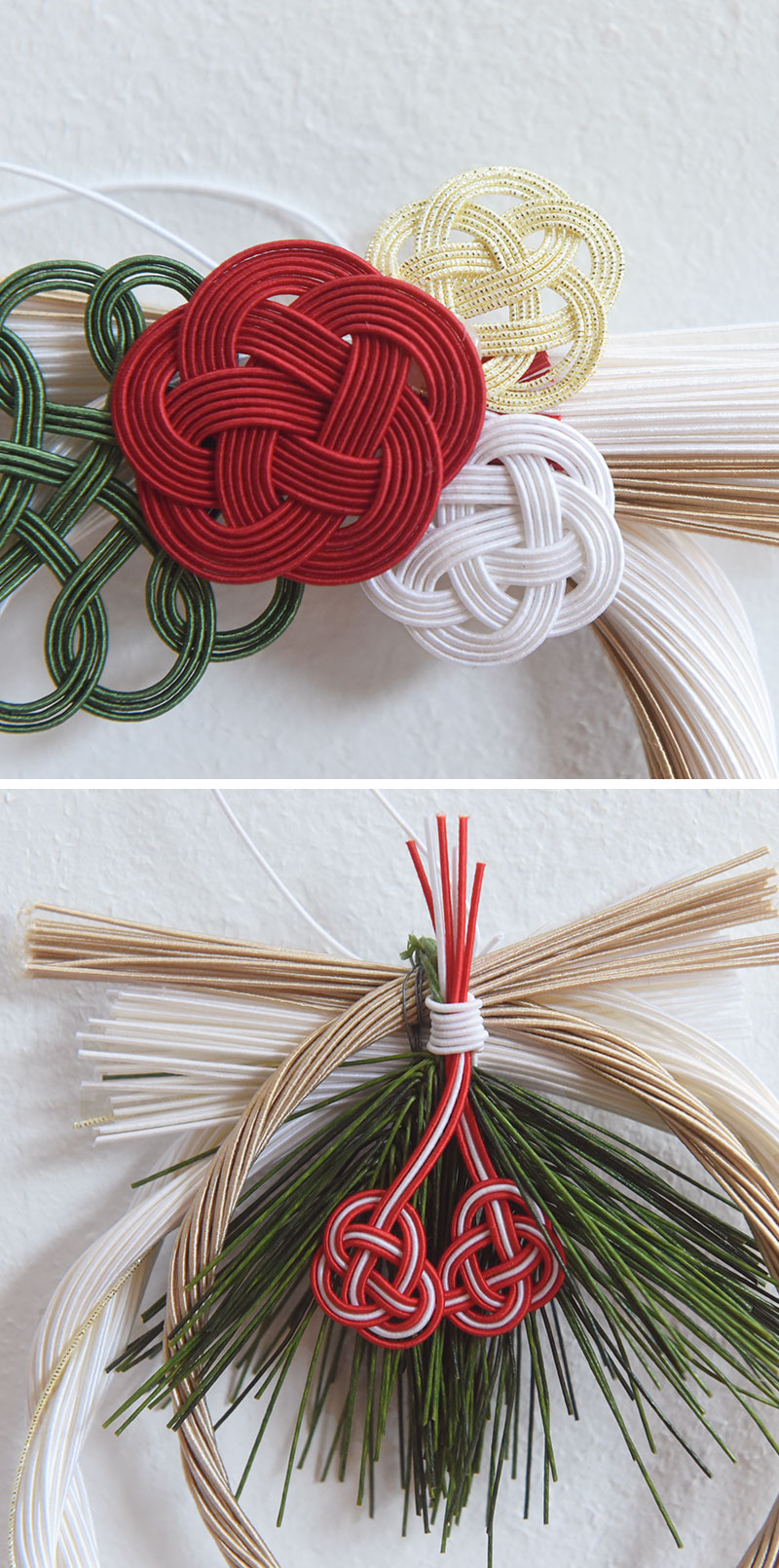 お正月らしさを演出しながらも、藁(わら)ではなく水引で形づくることで、現代の暮らしに馴染むようなデザインに仕上げられています。